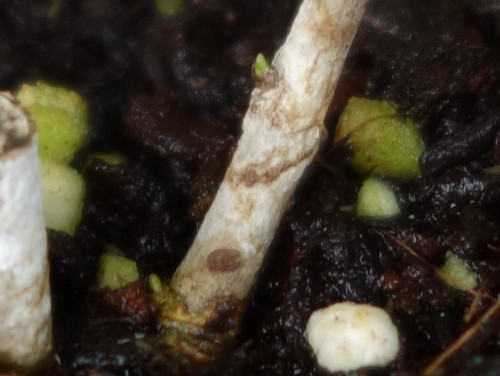 掘り起こしてみました。緑色は残っています。根は見当たりません。